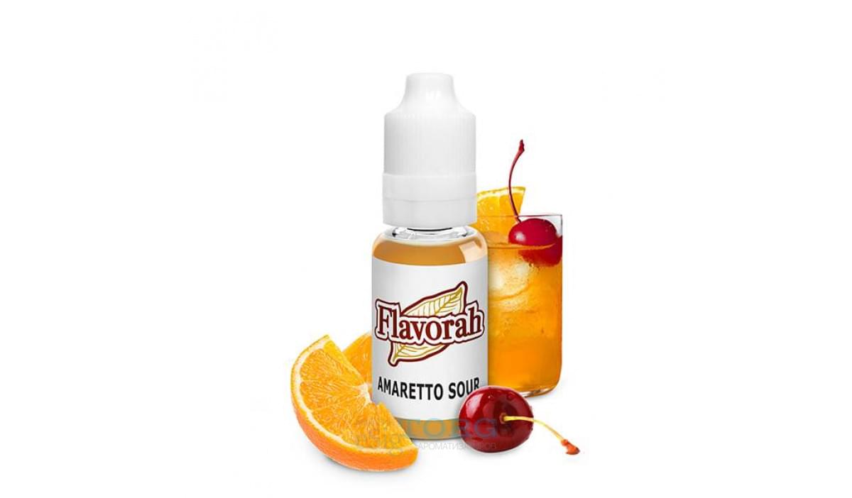Amaretto Sour — кислый концентрат марки Flavorah, разработанный специально для рецептеров. Арома обладает вкусом коктейля из амаретто, лимона, лайма и апельсина. Хороший , алкогольный коктейль . Вишнёвые , миндальные ноты , более вишнёвые, чем миндаль . Горький экстракт миндального ореха почти , с большей частью этой вишневой ноты . Кислая часть более заметна свежей . Через неделю кислая нота исчезает , и она становится тёплой , липкой , тёмной выпечкой с вишнёвой нотой . Было бы хорошо использовать её , для поддержки вишневых ароматов и выпечкой , но , с оговоркой , что , когда Вы поднимаете её выше , в ней есть охлаждающая нота .