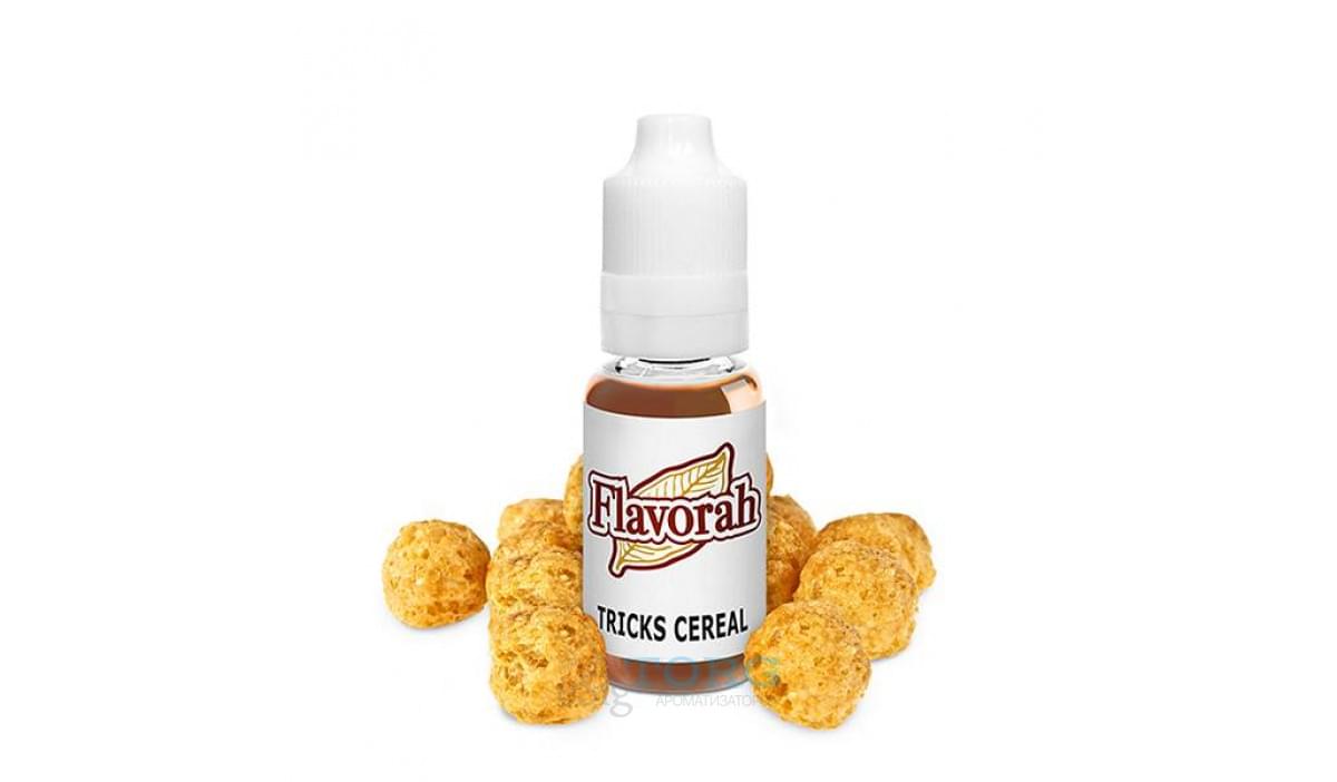 Tricks Cereal — вкус сухих хлопьев. Это чистый зерновой вкус для приготовления аппетитных завтраков и десертов. Рекомендуется смешивать Tricks Cereal FLV с фруктами, молоком, сладкими аромами. При употреблении придерживайтесь небольшой дозировки: от 1,5 до 3,2% (соло-замесы) и 0,1-2,5% (рецепты).